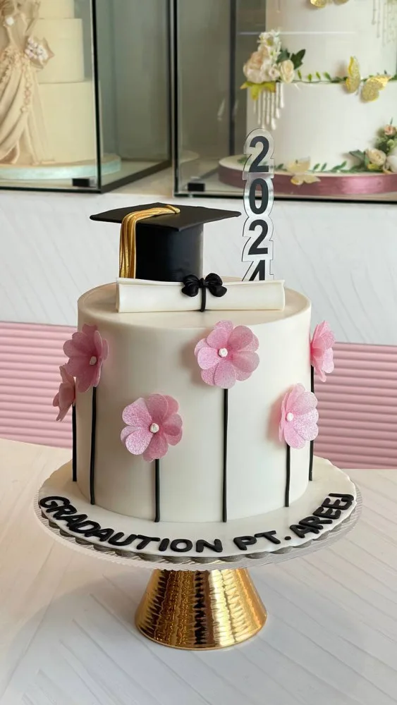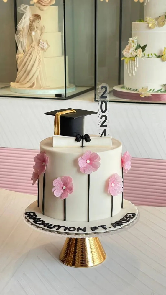 اجعل يوم تخرجك لا يُنسى مع هذه الكيكة التي ستضيف لمسة من السعادة والبهجة على الحفل. لا تنسى، كل قضمة من هذه الكيكة ستكون مليئة بالذكريات الجميلة.