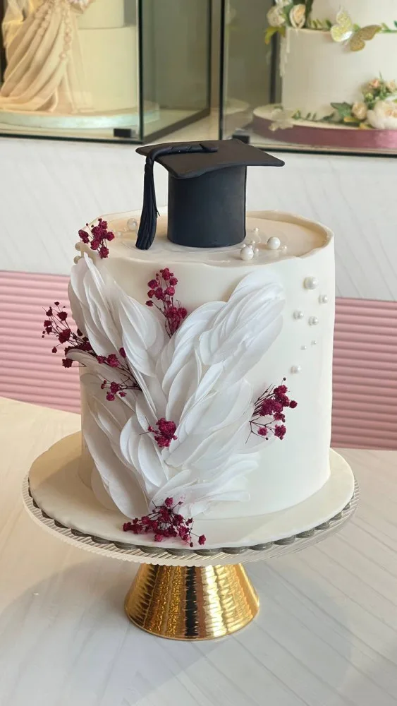 اجعل يوم تخرجك لا يُنسى مع هذه الكيكة التي ستضيف لمسة من السعادة والبهجة على الحفل. لا تنسى، كل قضمة من هذه الكيكة ستكون مليئة بالذكريات الجميلة.
