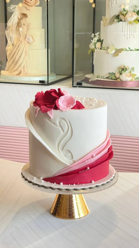 اجعلوا لحظات خطوبتكم أكثر تألقًا مع كيكتنا المصممة خصيصًا لهذه المناسبة السعيدة. تتميز الكيكة بتصميم أنيق يعكس روح الفرح والاحتفال، مع طبقات غنية وطعم لا يُنسى.
