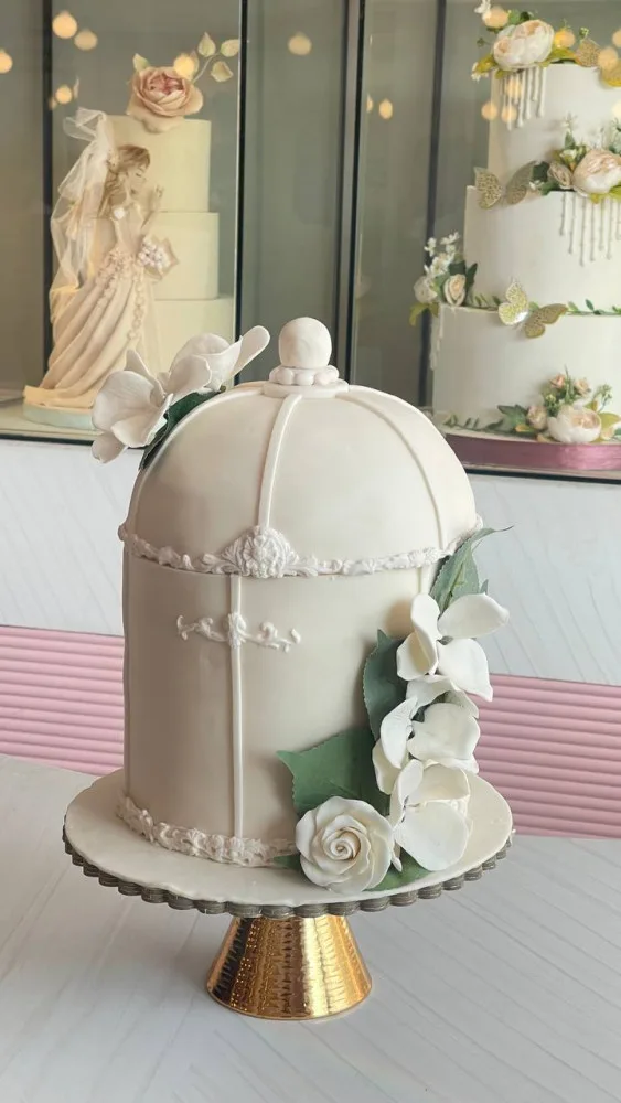 أضفوا لمسة من السحر والرقي إلى يوم زفافكم مع كيكتنا المصممة خصيصًا لتكون محور الاحتفال. كيكة تجمع بين الأناقة والطعم الرائع لتكمل لحظاتكم السعيدة بأفضل شكل ممكن.
