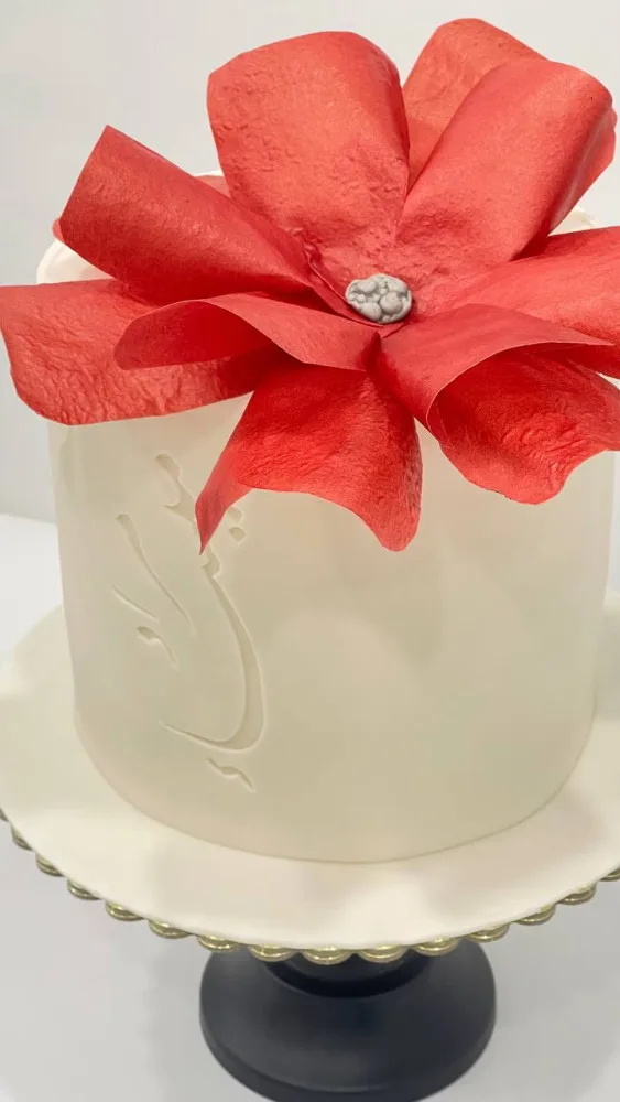 أضفوا لمسة من السحر والرقي إلى يوم زفافكم مع كيكتنا المصممة خصيصًا لتكون محور الاحتفال. كيكة تجمع بين الأناقة والطعم الرائع لتكمل لحظاتكم السعيدة بأفضل شكل ممكن.